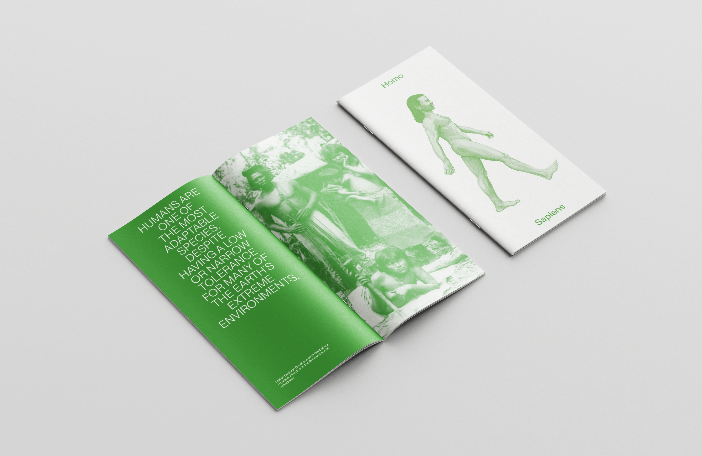 A mix of serif and sans-serif typefaces creates a clear typographic hierarchy—distinguishing titles and quotes from the body text—while reinforcing the balance between history and modernity in the narrative of our species.